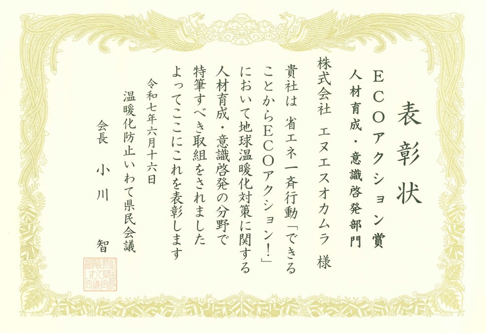 ②当社は地球温暖化対策の一環として省エネ等の活動が認められ、岩手県から3回目の「できることからECOアクション!」