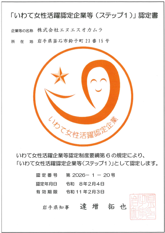 *岩手県のHP「いわて地球環境にやさしい事業所」認定事業所一覧に掲載されています。